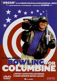 política armamentística del gobierno norteamericano y en la facilidad con la que cualquiera puede disponer de un rifle. En su documental "Bowling for Columbine" se propone explorar sobre la racionalidad y sensibilidad de la sociedad norteamerica-na, con la idea de llegar a alguna conclusión sobre la locura asesina y la paranoia armamentística que cada día se pone de manifiesto en su seno, con estadísticas que no tienen igual en el mundo, con muertes hacia adentro, de norteamericanos por norteamericanos, y guerras hacia fuera, contra quien sea que otorgue esa posibilidad. En este muy interesante documental Moore hace un recorrido por la ideocincracia del norteamericano y realiza una inteligente comparación con sus vecinos canadiences, plantea la posición de ambos bandos y las consecuencias que tiene en nuestros días el Derecho de los ciudadanos de armarse y la paranoia colectiva que viven y que nos afecta al resto de la humanidad. Moore fue premiado con el Gran premio del 55 Aniversario en el Festival de Cannes de 2003 y el Oscar a la Mejor Película Documental.